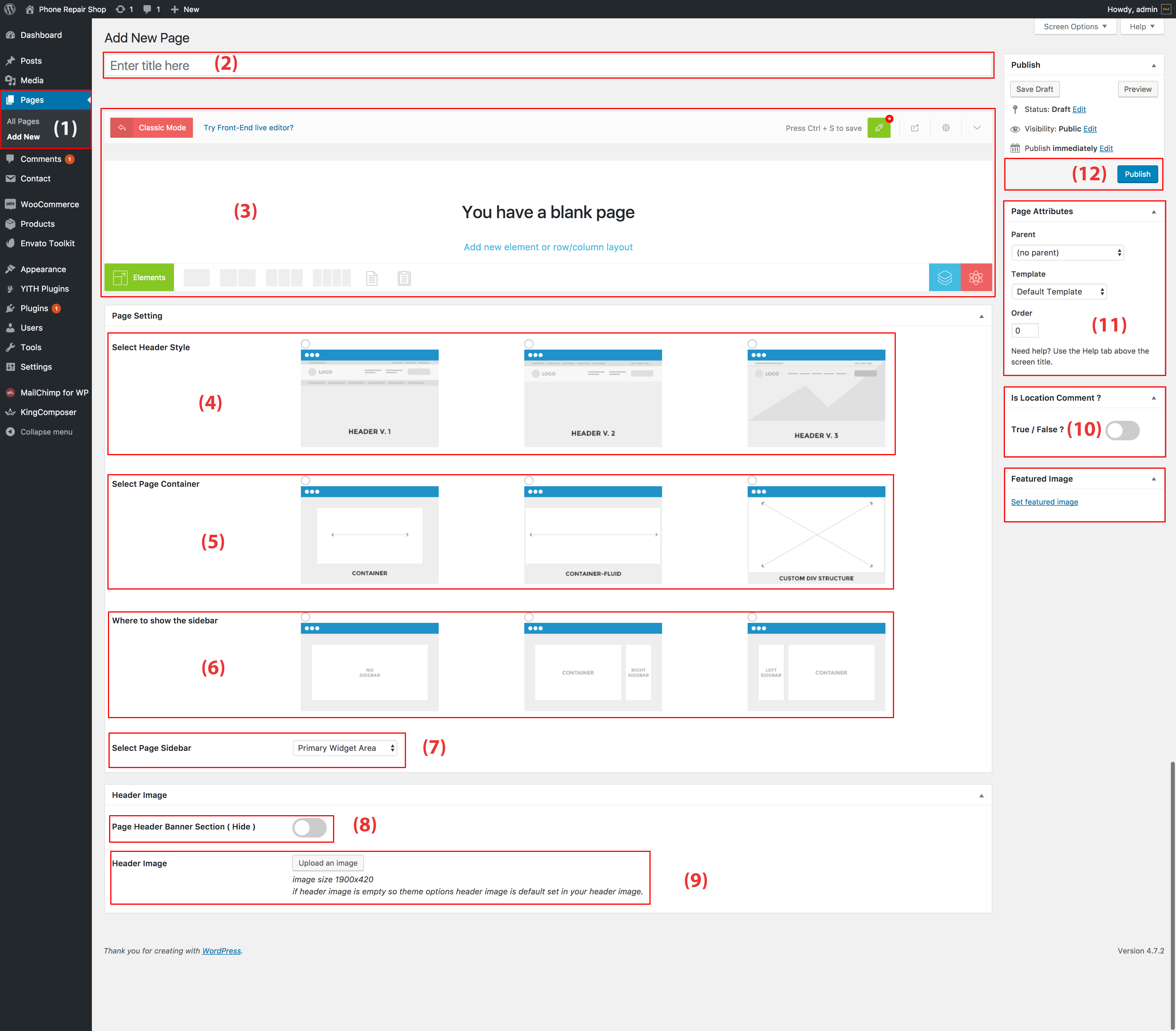 11. **Templates —** Choose your page templates that used to change the look and feel of a page